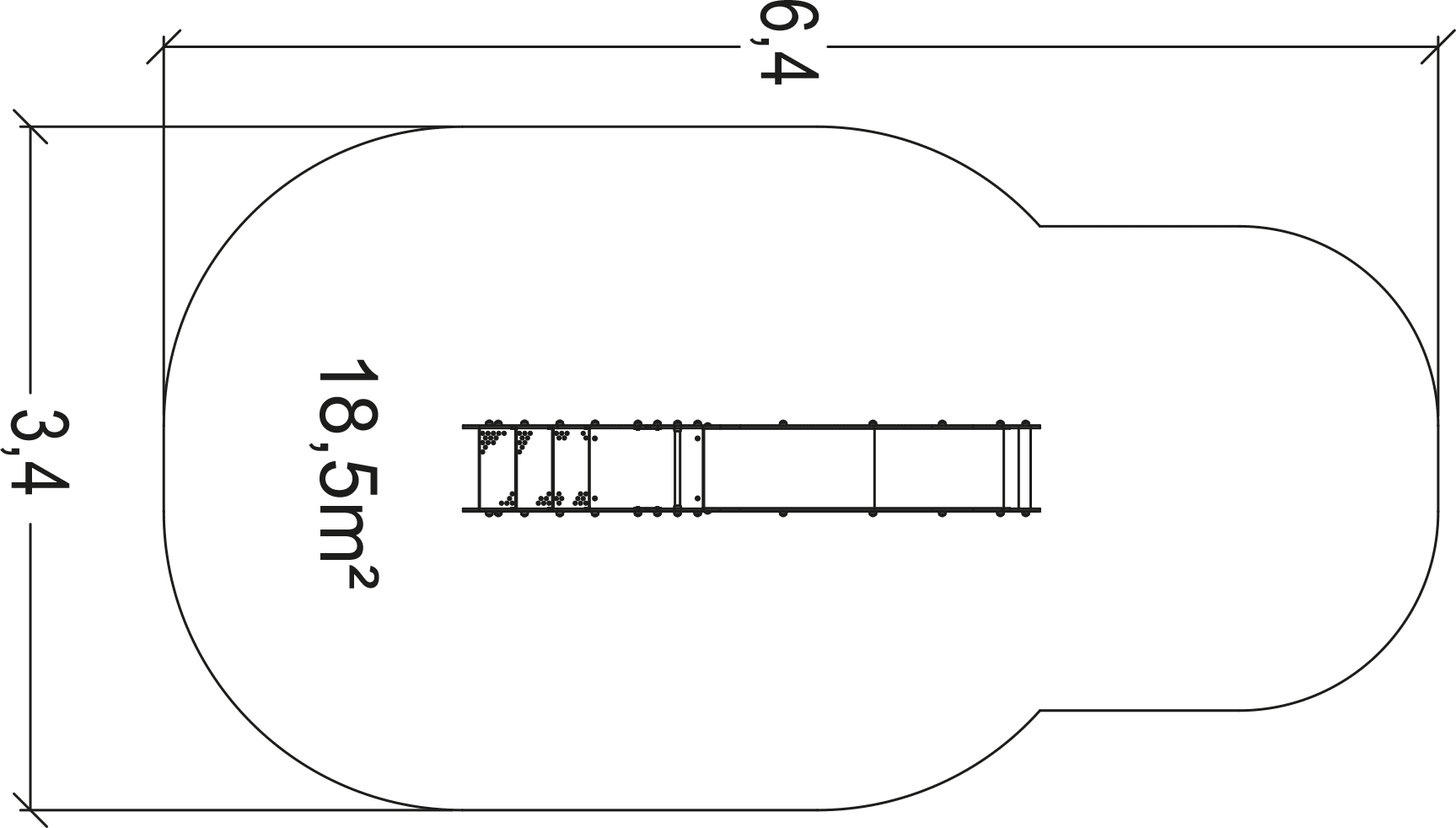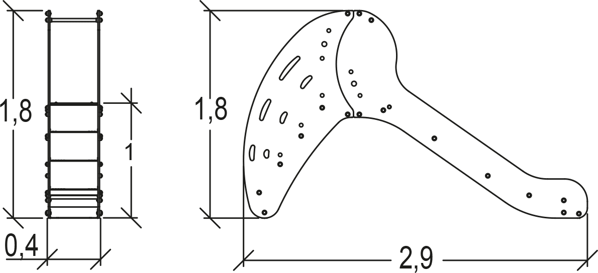 Les dimensions du module sont les suivantes : 2,90 m de longueur, 0,47 m de largeur, 1,75 m de hauteur. La hauteur de chute libre (HCL) est de 1,00 m.