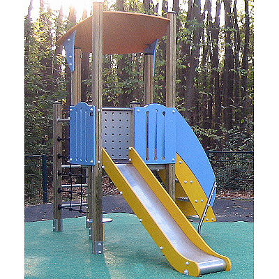 Structure multi-activités avec toboggan et maisonnette cabane - J3337