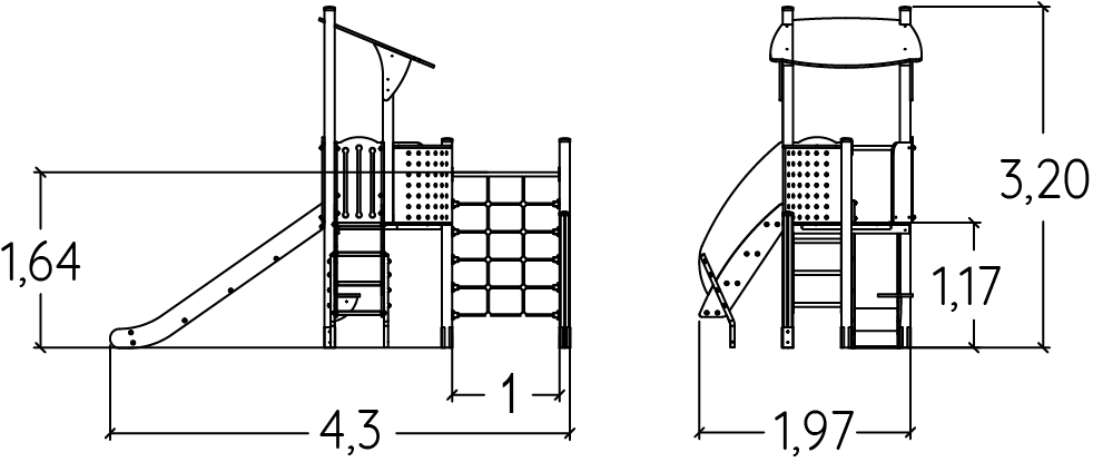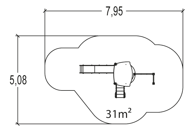 Les dimensions du module sont les suivantes : 4,30 m de longueur, 1,97 m de largeur, 3,20 m de hauteur. La hauteur de chute libre (HCL) est de 1,70 m.