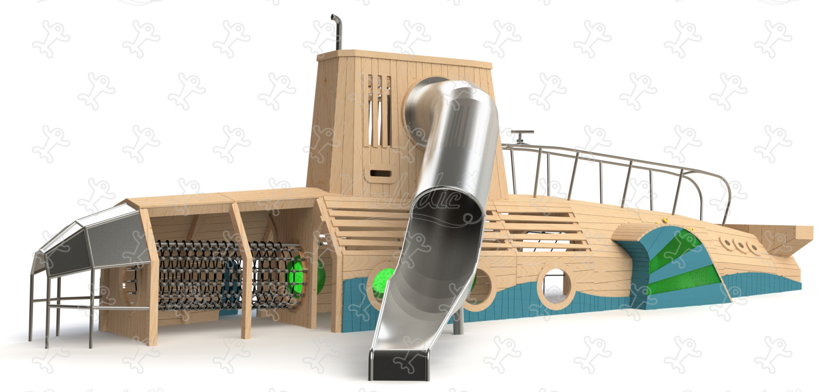 Structure de jeux multi-activités en bois sous-marin avec toboggan - Sous-marin - J49139®