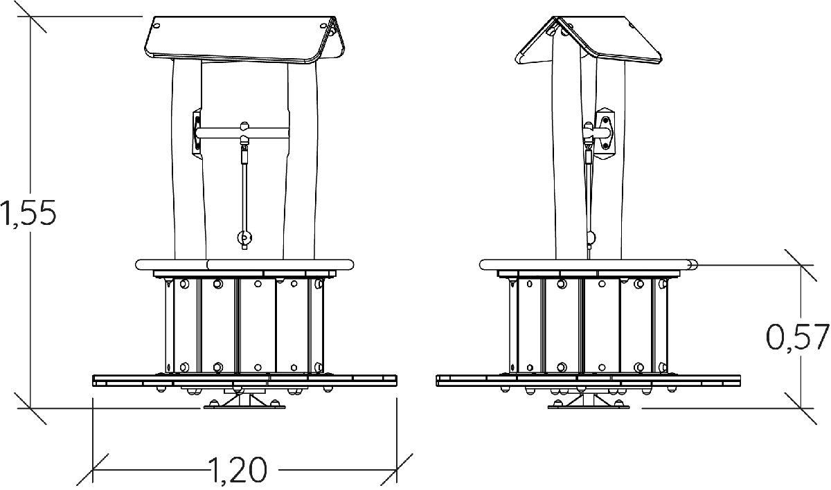 Les dimensions du module sont les suivantes : 1,20 m de longueur, 1,20 m de largeur, 1,55 m de hauteur. La hauteur de chute libre (HCL) est de 1,00 m.