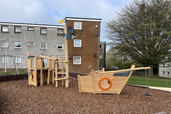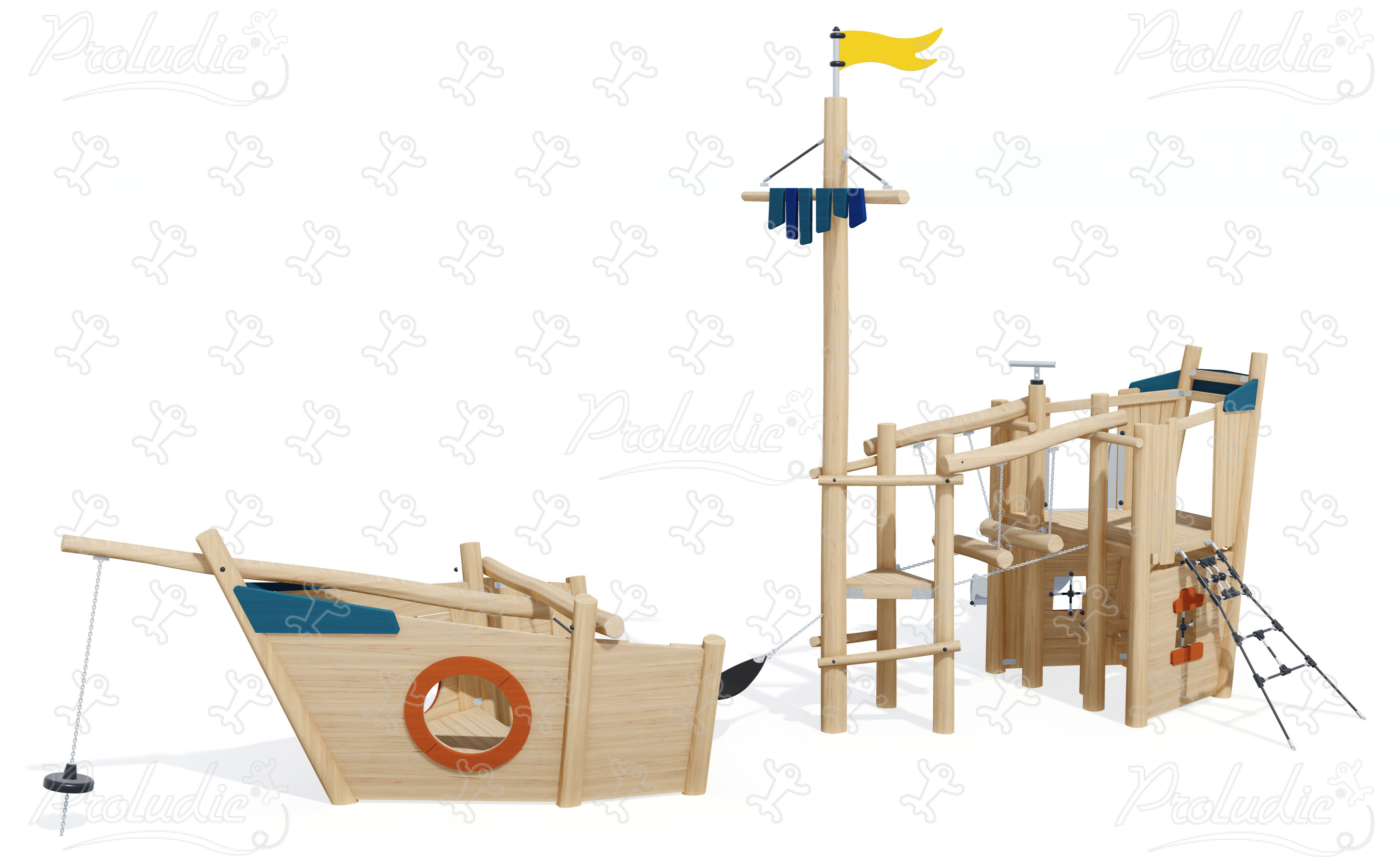 Structure de jeux multi-activités en bois bateau avec toboggan et jeux à grimper - Frégate - J49302®