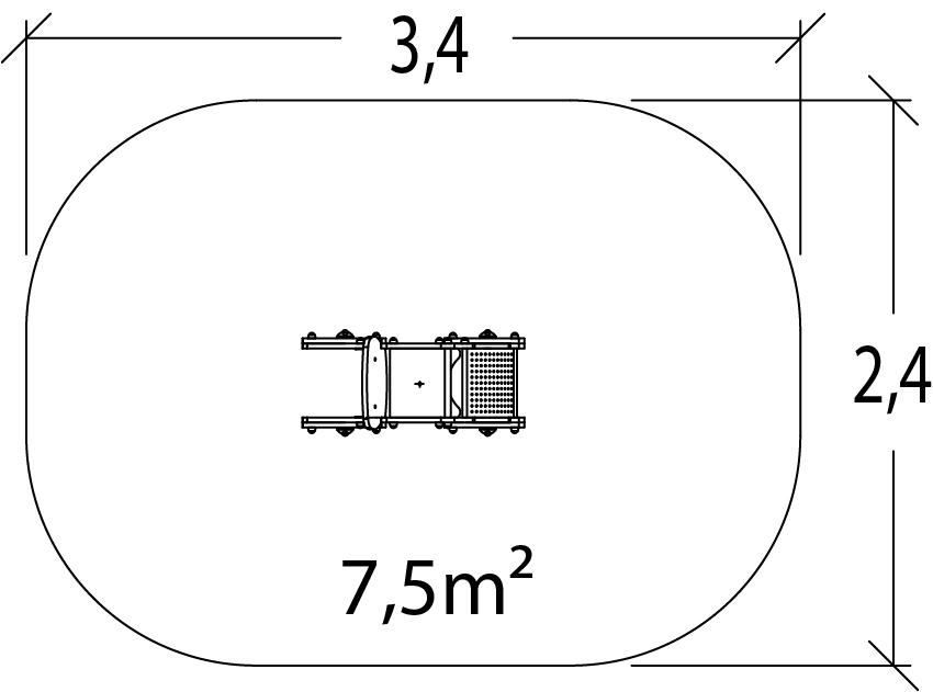 Les dimensions du module sont les suivantes : 0,97 m de longueur, 0,42 m de largeur, 0,82 m de hauteur. La hauteur de chute libre (HCL) est de 0,60 m.